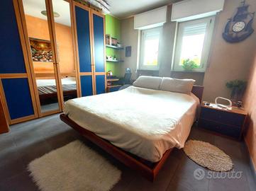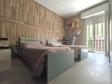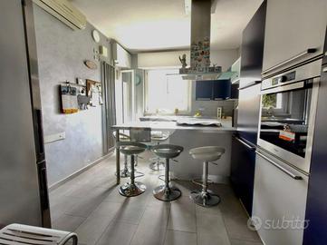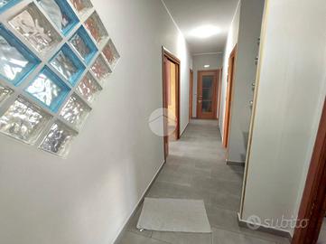 Proponiamo in vendita ampio e luminoso appartamento di 120 mq, disposto su un unico livello, ideale per chi cerca spazi comodi e ben distribuiti. L'immobile è composto da ingresso, elegante sala doppia, cucina abitabile, ampio bagno, due camere da letto e pratico ripostiglio. La soluzione si presenta completamente ristrutturata e pronta da abitare, con finiture moderne e curate nei dettagli. È dotata di infissi in PVC con doppio vetro, porta blindata, climatizzatore, zanzariere e tende da sole sia estive che invernali, per garantire comfort in ogni stagione. L'appartamento gode di ottima luminosità durante tutto l'arco della giornata. Completano la proprietà un comodo posto auto sotto casa e una cantina.Situato in contesto tranquillo ma comodo a tutti i principali servizi. Il condominio, in paramano rosso, è stato recentemente oggetto di riqualificazione con Ecobonus 110%, che ha interessato facciata, cappotto termico, tetto, balconi e frontalini, garantendo efficienza energetica e valore nel tempo