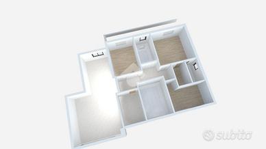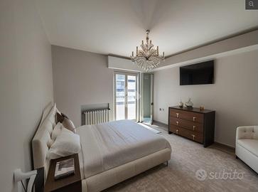 L'abitazione si compone di un ampio soggiorno di 45 metri quadri, separato dalla pratica cucina abitabile. Attraverso il disimpegno si accede poi ad un ampio e attrezzato corridoio con armadiature a muro e quindi alla prima camera da letto, il bagno finestrato, dotato di vasca idromassaggio jacuzzi, e la camera padronale con bagno privato e cabina armadio. A completare la zona notte troviamo la terza camera.