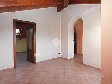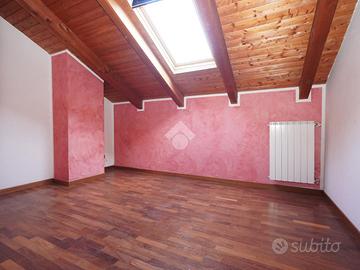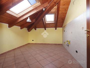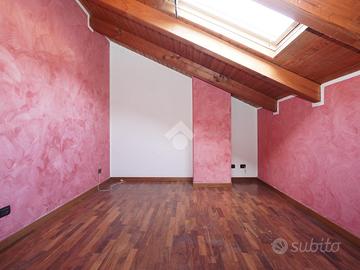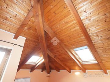 Alloggio interamente mansardato, dove il tetto in legno a vista diventa l'elemento architettonico dominante e accompagna tutti gli ambienti, disegnando volumi irregolari e profondità diverse. Le altezze interne variano dai 3,70 metri del colmo ai 1,40 metri delle parti più raccolte, dando forma a uno spazio che cambia continuamente e che si distingue nettamente dalle abitazioni tradizionali.