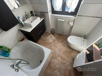 Accedendo troviamo un disimpegno di ingresso da cui si può accedere all'accogliente soggiorno e all'ampia cucina abitabile, provvista di terrazzo che si affaccia sul cortile comune. Proseguendo su questo piano abbiamo il bagno, con vasca e finestra che permette di filtrare la luce.