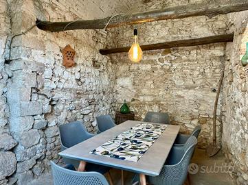 Nel cuore autentico del Centro Storico di Tarano proponiamo in vendita casa in pietra con terrazzo panoramico e grotta relax. Al piano terra, l'ingresso si apre su un salone accogliente con camino in muratura, perfetto per le serate invernali. La cucina abitabile, completamente ristrutturata con materiali di pregio, unisce funzionalità e stile, mentre due bagni uno con doccia e uno di servizio completano la zona giorno. Una scala interna conduce alla zona notte composta da una cameretta e da una camera padronale luminosa, con affaccio diretto sulle verdi colline della Sabina, un panorama che conquista ad ogni sguardo. All'esterno, tramite un accesso separato, si trovano due cantine utilissime come spazi di servizio o per creare una zona personale. Ma il vero fiore all'occhiello di questa proprietà è il grande terrazzo panoramico, un angolo di paradiso dove rilassarsi, cenare all'aperto o semplicemente godere del silenzio e della bellezza circostante. Adiacente al terrazzo, una grotta naturale è stata sapientemente trasformata in una raffinata sala relax, un ambiente unico nel suo genere, fresco d'estate e affascinante tutto l'anno. Dati tecnici: Infissi doppio vetro/legno - riscaldamento a gas comunale - acqua diretta e fognatura comunale. Questa casa è l'opportunità perfetta per chi desidera vivere in un luogo autentico, ricco di storia e bellezza, senza rinunciare al comfort moderno.
