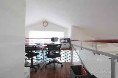 Ambiente rifinito adibito a cabina armadio e studio/ufficio, ideale per smart working o zona hobby.