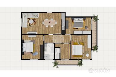 La soluzione abitativa offre una distribuzione degli spazi intelligente e ben pensata per massimizzare il comfort. L'ingresso conduce a un'ampia e luminosa Cucina/Sala a vista, ideale per momenti di convivialità. La zona notte si compone di tre comode Camere da letto, garantendo privacy e spazio per tutta la famiglia. Completano l'appartamento due bagni per la massima praticità e un utile ripostiglio. Due spaziosi balconi permettono di godere di piacevoli momenti all'aria aperta e offrono luminosità agli ambienti.