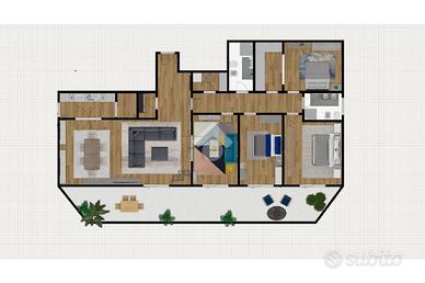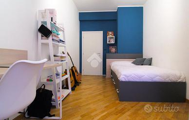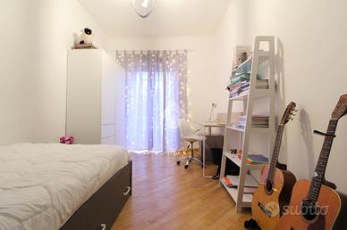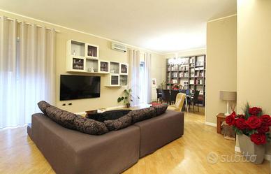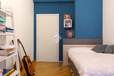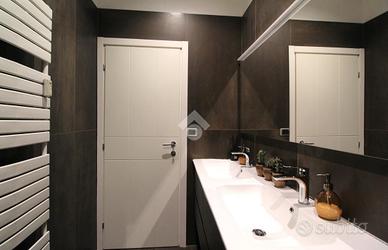 Varcando la soglia, si viene accolti da un'ampia e luminosa zona living, pensata per chi ama vivere la casa con stile. Il doppio soggiorno, impreziosito da una moderna porta scorrevole in vetro, regala un raffinato gioco di luce e spazi, offrendo due aree distinte ma comunicanti, ideali per adattarsi a diverse esigenze, dal relax alla convivialità. La cucina, separata e funzionale, è affiancata da un comodo ripostiglio, perfetto per mantenere ordine e organizzazione.