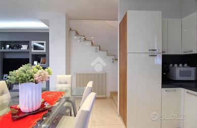 La proprietà si sviluppa all'interno di un contesto indipendente e riservato, dove il cancello d'ingresso introduce a una porzione di casa completamente rinnovata, caratterizzata da linee moderne e una distribuzione degli ambienti studiata per rendere fluida e armoniosa la quotidianità nelle due unità.