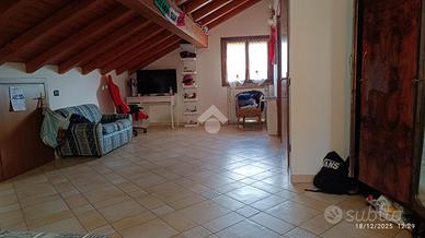 CERREDOLO: località la Cà, in piccola palazzina in mattone a vista, con ingresso indipendente, appartamento al piano primo composto da: soggiorno con angolo cucina di 40 mq., due camere, bagno, terrazzo di ingresso e balcone; Piano secondo mansarda alta con tetto in legno a vista, con due camere di 30 mq. , due bagni e due soffitte/ripostiglio. Garage al piano terra. In buone condizioni e parzialmente arredato. L' immobile è occupato da inquilino, con contratto in scadenza a luglio 2027, affitto € 600/mese.