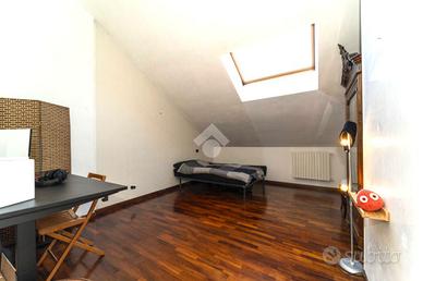 Via Isonzo A pochi passi da Corso Peschiera e Via Monginevro, proponiamo in vendita un ampio e luminoso appartamento situato all'ultimo piano di uno stabile del 2000, privo di barriere architettoniche e dotato di un curato giardino condominiale. L'abitazione, caratterizzata da eleganti pavimenti in parquet, si sviluppa su due livelli. L'ingresso living si apre su una luminosa zona giorno doppia e su una cucina abitabile. Entrambi gli ambienti hanno accesso al balcone con vista panoramica su Superga. La zona notte comprende due camere da letto, una dotata di velux e l'altra con balcone, oltre ad un bagno finestrato completo di vasca idromassaggio. Dal soggiorno, una scala interna conduce al piano superiore, dove troviamo un soppalco vivibile ideale come zona studio o relax, una terza camera da letto con doppie finestre che garantiscono ottima luminosità, un secondo bagno finestrato con box doccia ed un ampio ripostiglio utile come spazio di servizio. La soluzione è dotata di infissi in legno doppio vetro, oltre a velux muniti di serrande ad apertura elettrica. Il riscaldamento è autonomo. Completa la proprietà una cantina di pertinenza, comodamente raggiungibile tramite l'ascensore che arriva direttamente al piano.