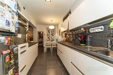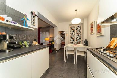 Nel cuore di Borgo San Paolo, nelle vicinanze di via Monginevro e a ridosso di numerose attività commerciali e mezzi di trasporto pubblico, proponiamo in vendita un ampio cinque locali finemente ristrutturato, situato all'interno di un piccolo stabile ben curato, in una tranquilla via residenziale. L'appartamento presenta un ingresso che si apre su un ampio soggiorno open space, valorizzato dalla pavimentazione in parquet, presente in tutti gli ambienti, e da un grande balcone che garantisce luminosità naturale durante tutto l'arco della giornata. La cucina abitabile, ben organizzata, è dotata di una comoda dispensa e di un balcone verandato; direttamente dalla cucina si accede inoltre a una pratica lavanderia, facilmente trasformabile in un secondo bagno. La zona notte è composta da tre camere da letto, tutte dotate di balcone. La camera matrimoniale offre una spaziosa cabina armadio angolare e un ampio balcone vivibile, mentre la seconda camera, anch'essa di generose dimensioni, gode di un'ottima luminosità grazie alla presenza del suo balcone. La terza stanza è attualmente adibita a cabina armadio, ma si presta a molteplici utilizzi. Il bagno, finestrato, è completo di box doccia. Completa la proprietà un ripostiglio, utile come spazio di servizio. L'immobile è stato oggetto di una ristrutturazione totale e dispone di infissi con doppio vetro vasistas, impianto di climatizzazione, sistema di antifurto e porta d'ingresso blindata, garantendo sicurezza ed efficienza. A concludere troviamo una cantina di perninenza al piano interrato.