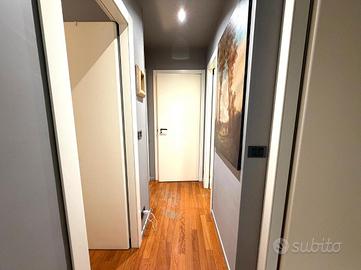 Un elemento distintivo dell'appartamento è l'ampio terrazzo e il balcone che si sviluppa su due lati della casa, da cui si gode di una straordinaria vista panoramica: da un lato l'arco alpino, dall'altro la Mole Antonelliana.