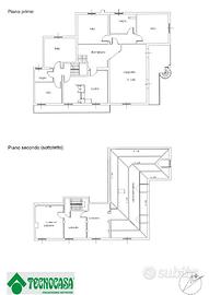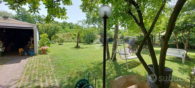 Casa indipendente con ampio giardino privato. Bifamiliare con ingressi separati ma collegabili e potenziale attività commerciale al piano terra. Abitazione principale sviluppata sul primo piano: quattro camere da letto, una cucina abitabile con accesso al balcone, ampio salone con accesso a terrazzo coperto. Bagno patronale e bagno secondario con doccia. Mansardato. Box auto privato interno e parcheggio pubblico di fronte all'immobile.