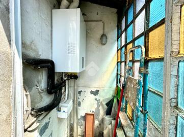 I vetri che decorano la porta del locale caldaia, accessibile comodamente dal balcone, sono invece ancora originali e aggiungono un tocco retrò allo spazio esterno. La caldaia è recentissima, sostituita lo scorso settembre con un performante nuovo modello a condensazione.