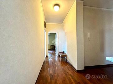 La proprietà, posta a un piano alto, offre una vista panoramica sulla città, garantendo un'eccezionale luminosità in tutti gli ambienti. L'appartamento si compone di cinque locali ben distribuiti, con generose metrature che assicurano comfort e funzionalità.