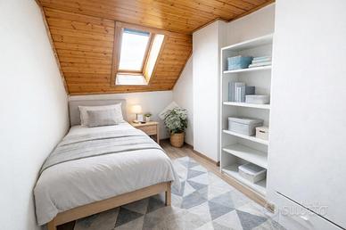 Salendo al livello superiore si accede alla zona notte, ben organizzata e pensata per soddisfare le esigenze di una famiglia. Qui troviamo una camera singola, ideale anche come studio o stanza hobby, una spaziosa camera matrimoniale, una camera doppia di buone dimensioni e un bagno finestrato, che garantisce luce e ventilazione naturale.