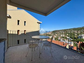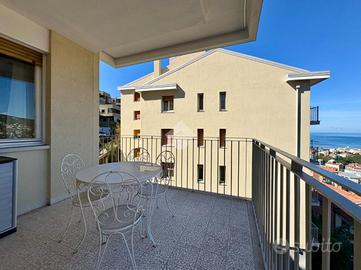 L' appartamento è composto da un ampio atrio d'ingresso che conduce al salone doppio con accesso diretto al terrazzo panoramico di circa 16mq, cucina separata e abitabile, una camera matrimoniale, due bagni finestrati e due camere singole; di cui una con balcone. Completa la proprietà un comodo spazio in soffitta comune.