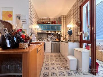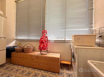 L'ingresso si apre su un ampio soggiorno con zona pranzo e caminetto, ideale per momenti di convivialità e relax. La cucina è separata, comoda e ben attrezzata, con accesso diretto a una delle verande. A servizio della zona giorno troviamo inoltre un pratico locale stireria/lavanderia e un bagno finestrato con doccia.