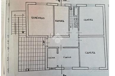 Tramite scala esterna si arriva al primo piano, dove si sviluppa l'appartamento.