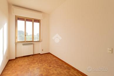 La zona notte si divide in tre camere da letto, di cui due matrimoniali di ampia metratura, e un bagno completo di box doccia e finestra.