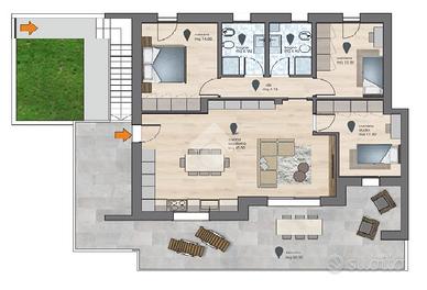 Questa abitazione si sviluppa su una superficie ben distribuita, con 3 luminose camere da letto, 2 moderni bagni e una spaziosa zona giorno di 40 mq, pensata per offrire il massimo del comfort e della convivialità. L'ampio soggiorno, infatti, si presta a diventare il cuore pulsante della casa, ideale per momenti di relax o per accogliere gli ospiti.