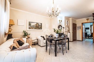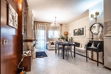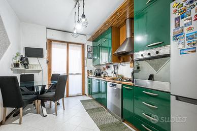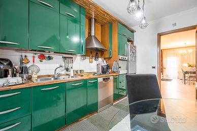 La costruzione risale alla fine degli anni '90 e si presenta in ottime condizioni, anche grazie alle facciate rivestite con mattoni a vista. Anche tutte le altre parti comuni si presentano in maniera impeccabile. Nella immediate vicinanze è presente un centro sportivo con palestra e piscina, con campi da calcio e da padel, oltre che con percorso ginnico. Mezzi pubblici e attività commerciali si trovano in prossimità. L'appartamento oggetto della proposta si presenta in ottime condizioni. E' situato all'ottavo ed ultimo piano, è disposto su due arie, gode di una suggestiva vista panoramica e risulta molto luminoso. E' accessoriato con videocitofono, portoncino blindato, serramenti con doppi vetri. L'impianto di riscaldamento è autonomo e la caldaia è posizionata nell'apposito vano esterno. La zona giorno è composta dall'ampio soggiorno living, con accesso allo spazioso terrazzino e dalla cucina abitabile, con accesso al balcone. Il disimpegno conduce alla zona notte, dove si trovano la camera matrimoniale, la camera dei ragazzi, l'ampio bagno finestrato ed il bagno di servizio, cieco. Soprastante l'alloggio e collegata ad esso, tramite la scala situata nel soggiorno, la mansarda, completamente rifinita, illuminata, riscaldata ed avente anche accesso indipendente, rappresenta un ampio spazio utilizzabile a piacimento sia come ampliamento della zona notte che della zona giorno sottostanti. Completano la proprietà, al piano interrato, il vano ad uso cantina ed il box auto singolo, compreso nel prezzo richiesto.
