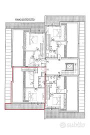 L'appartamento è composto da un primo piano di circa 80 mq. con: ampia zona giorno living con cucina a vista con affaccio su un ampio terrazzo di 25 mq., disimpegno notte con due camere matrimoniali di cui una con uscita sul terrazzo, bagno finestrato con doccia e attacco lavatrice. Al piano secondo mansardato, di circa 80mq., che si accede sia da scala interna che dalla scala esterna comune, troviamo una camera matrimoniale con accesso ad un terrazzo di 15 mq., una cameretta e un bagno.
