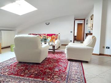 Nel cuore di Borgo Nuovo a Verona, proponiamo un appartamento di 130 mq situato all'ultimo piano di un edificio moderno con ascensore. La proprietà, costruita nel 2005, offre spazi ben distribuiti e funzionali. Al quarto piano troviamo la zona giuorno con l' ingresso e il soggiorno con angolo cottura;un comodo corridoio, ideale per collocare un armadio a 6 ante, ci porta nella zona notte dove troviamo una camera matrimoniale, un bagno finestrato con vasca e un una lavanderia che può esser trasformata in un ulteriore bagno . Tutte le stanze sono collegate al balcone che gira tutto attorno all'appartamento dando molta luce e una vista invidiabile. Dalla zona giorno, delle scale ci conducono alla parte mansardata dove troviamo 2 ampi locali, di cui uno attualmente adibito a salottino e l'altro a camera matrimoniale e un bagno con velux, dotato di doccia.garantendo comfort e praticità. L'immobile è dotato di riscaldamento autonomo ed è presente l'impianto di climatizzazione. Completano l'unita immobiliare una cantina al piano interrato