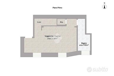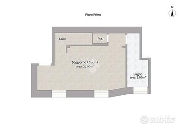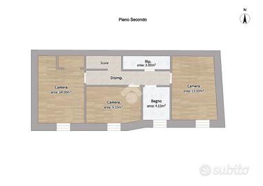 L'immobile composto da Soggiorno / Cucina, tre Camere di cui due matrimoniali, due Bagni finestrati ed un ripostiglio, si sviluppa su due livelli.