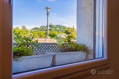 LUNGADIGE RIVA-BATTELLO - In una delle zone più suggestive e ricercate nel centro storico di Verona, proponiamo in vendita appartamento situato al piano terra di circa 162 mq. ristrutturato internamente con uno stile industriale moderno e raffinato. L'immobile si distingue per i suoi ampi spazi interni dimensioni e per la luminosità naturale, garantita da cinque grandi finestre che offrono una splendida vista panoramica sulle colline di Verona. La zona giorno si compone di un soggiorno di generose dimensioni con angolo cottura a vista, perfetto per vivere momenti conviviali in un ambiente accogliente e dal carattere deciso. La zona notte comprende tre camere da letto di cui una con bagno en suite, un secondo bagno di servizio ed una vano lavanderia. Finiture di qualità, spazi ben distribuiti e un'atmosfera accogliente e contemporanea. Incluso nella vendita anche un box auto privato, situato a circa 500 metri dall'immobile, fuori dalla ZTL: una soluzione comoda per chi cerca praticità senza rinunciare alla centralità. Un'opportunità unica, ideale per famiglie, professionisti o per chi desidera vivere in un ambiente unico e ricercato, nella massima tranquillità a due passi dal Duomo di Verona.