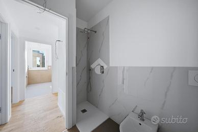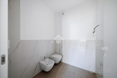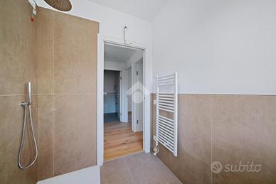 Internamente l'appartamento sarà composto da ampio soggiorno con cucina a vista e accesso al terrazzo, due bagni, una camera singola e due camere matrimoniali, entrambe con accesso al balcone. Salendo le scale troviamo la mansarda con accesso al terrazzo di 37 mq.