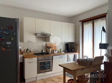 Appartamento al piano alto, servito da ascensore e composto da un bel soggiorno luminoso con accesso al terrazzo in cui è possibile attrezzare un tavolo per pranzi e cene estive, cucina abitabile con baclone, tre camere da letto, due bagni con finestra e ripostiglio.