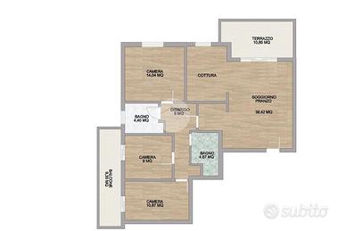 Soggiorno/sala pranzo con angolo cottura - tre camere da letto - due bagni - balcone - terrazzo - garage - cantina