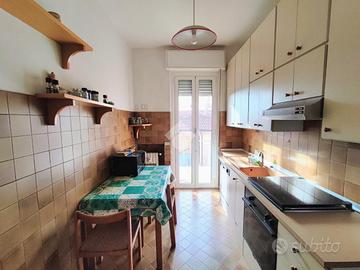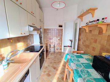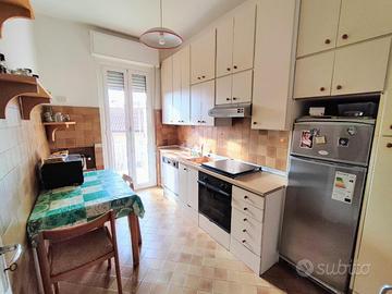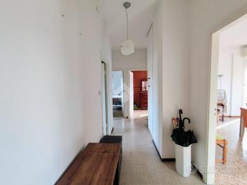 Il corridoio d'ingresso da accesso ai vari locali. La cucina abitabile, che potrebbe rimanere arredata, ha pratico terrazzino. Il soggiorno si affaccia sul terrazzo vivibile. Le camere da letto sono tre, tutte matrimoniali e due di esse hanno il balcone. Il bagno è ampio. Tutti i locali, grazie alle finestre triple, alle portefinestre e all'esposizione, sono particolarmente luminosi.