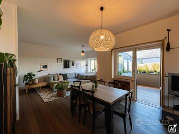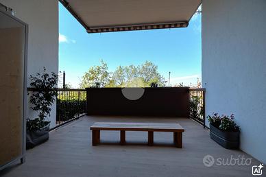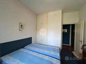 Successivamente un armadiatura molto comoda come 'salva spazi' ci conduce al cuore della zona notte in cui troviamo una cameretta con balcone annesso e la camera patronale di generosa metratura con accesso anch'essa allo spazio esterno privato. A servizio è presente un bagno finestrato con vasca.