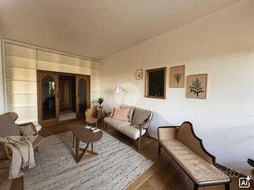 Attualmente varcata la soglia dell'immobile ci troviamo davanti un disimpegno impreziosito da una parete specchiata molto particolare dalla quale si snodano i vari ambienti. Sulla sinistra troviamo un bel soggiorno doppio di rappresentanza con uscita sul terrazzo che durante la bella stagione è il prolungamento del salotto. A destra incontriamo una stanza utilizzabile come studio o cameretta con anch'essa accesso su un balcone dalla quale scorgere la torre di San Biele.