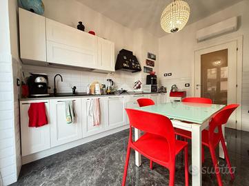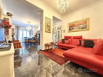 ZONA MURIALDO - VIA MONTE BIANCO! Nel cuore del quartiere Murialdo, con tutti i servizi a portata di mano, vi proponiamo un meraviglioso appartamento COMPLETAMENTE E FINEMENTE RISTRUTTURATO posto al quarto piano con ascensore. Questa elegante soluzione si trova all'interno di un palazzo ben tenuto a cortina, gode di un TERRAZZO ABITABILE e ha un'ottima esposizione (SUD -EST). La sua ampia metratura di 160 mq interni, la rende ancora più affascinante e rara da trovare in zona. La ristrutturazione è stata effettuata nel 2019 in maniera completa: -Infissi nuovi -Condizionatori in tutte le stanze -Tapparelle elettriche -Pavimento in marmo nero -Bagni in condizioni pari al nuovo -Certificazione di tutti gli impianti L'immobile si compone di: -Ingresso -Soggiorno doppio con un raffinato camino al centro della stanza con accesso al terrazzo -Cucina abitabile con balcone -3 Camere (due matrimoniali e una media) -2 Bagni entrambi finestrati (uno con doccia e vasca con zona lavanderia ed uno con doccia) -Grandi armadi a muro lungo il corridoio e all'ingresso. COMPLETA LA PROPRIETA' UN COMODO GARAGE, ANCHE QUESTO RISTRUTTURATO, DI 16 MQ NEL CORTILE CONDOMINIALE DEL PALAZZO! Per chi lo desidera, compreso nel prezzo, vi è anche il mobilio della cucina, camere e bagni!