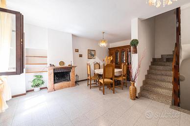 - Piano terra: ingresso su soggiorno con camino, cucina abitabile e bagno finestrato.