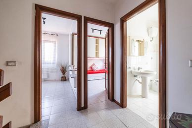 - Piano primo: zona notte con tre camere da letto (due matrimoniali e una singola) e secondo bagno.