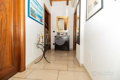 Proponiamo in vendita ampio cinque locali, situato all'interno di una palazzina signorile edificata nel 2011. La soluzione rifinita con materiali extracapitolato, è predisposta su due livelli: Al piano principale troviamo luminosa cucina abitabile, bagno finestrato con box doccia, cameretta e soggiorno con accesso diretto al terrazzo di 40 mq, dotato di punto acqua e barbecue. Dal soggiorno tramite comoda scala interna si ha accesso al piano superiore, in cui vi sono due ampie camere da letto, entrambe illuminate da infissi in vetrocamera in legno; e il bagno padronale, anch'esso finestrato e caratterizzato da vasca idromassaggio. La soluzione si presenta dotata di due climatizzatori Daikin, infissi in legno in vetrocamera, zanzariere e tende da sole nuove. A completare la propietà box auto doppio di 35 mq.
