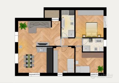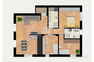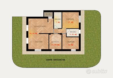Soggiorno - Cucina - Tre camere - Doppi servizi - Centrale termica - Giardino - Possibilità di posto auto coperto