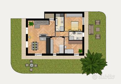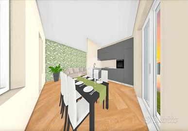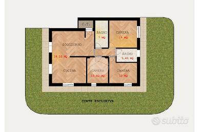 La soluzione che vi proponiamo in vendita è un appartamento al piano terra con ingresso indipendente, libero su tre lati e sviluppato su un unico livello di nuova realizzazione con ampio giardino esclusivo di circa 160 m² che si sviluppa tutt'intorno all'abitazione. Esso è accessibile da tutti i locali di cui è composto l'immobile quindi sia della zona giorno, che della zona notte per merito delle ampie porte finestre che garantiscono, altresì, degli ambienti molto luminosi. L'immobile, come anticipato, è caratterizzato da spazi ampi ed ariosi: la zona giorno, di circa 39 m², è caratterizzata da soggiorno con cucina a vista e questa generosa metratura rende possibile, qualora lo si volesse, la divisione dei due ambienti realizzando quindi una zona living separata; la zona notte invece è composta da tre camere da letto, una matrimoniale, una doppia ed una singola, e due bagni di cui il principale finestrato ed il secondo cieco di servizio.