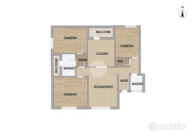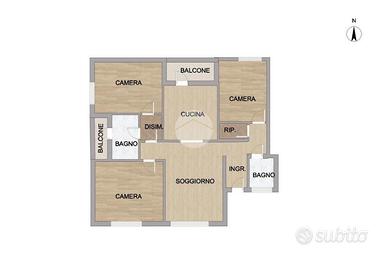 Ingresso - Soggiorno Cucina - tre camere da letto - Due Bagni- Posto auto coperto - Cantina