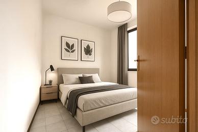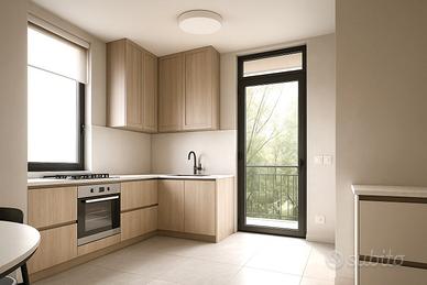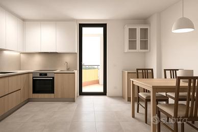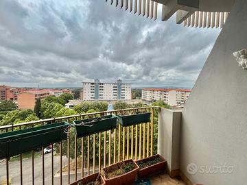 La disposizione interna comprende cinque locali ben distribuiti: un soggiorno accogliente con accesso al primo balcone, una cucina abitabile con accesso al secondo balcone, tre camere da letto di cui due matrimoniali e due bagni finestrati di cui uno con la vasca.