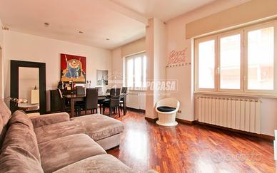 La Tempocasa Vigna Clara Fleming è lieta di proporvi in vendita nell'esclusivo quartiere Fleming, precisamente in Via Flaminia Nuova, un elegante appartamento di generosa metratura e così composto: ampio ingresso, con finestra, che conduce ad uno spazioso e luminoso soggiorno doppio; sempre dall'ingresso è possibile accedere a due disimpegni: il primo conduce ad una cucina abitabile e dotata di balcone di servizio, ad un bagno che affaccia sul medesimo spazio esterno, e a due luminose camere, una delle quali con accesso ad un secondo balcone; il secondo disimpegno porta alla terza camera, anch'essa con accesso ad terzo balcone, e ad un secondo bagno finestrato. E' presente anche un ripostiglio, che può essere adibito a cabina armadio.
