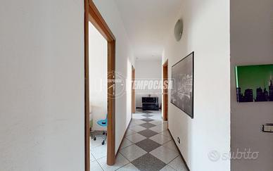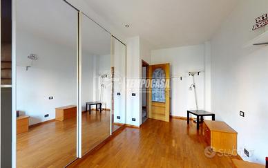 Un corridoio conduce alla zona notte, dove si trovano due camere da letto: una spaziosa e luminosa, l'altra con affaccio diretto su un balcone che regala sfogo esterno. Qui si trova anche il primo bagno finestrato, dotato di vasca e di doppio lavabo, pensato per la massima comodità della famiglia. La zona giorno, invece, si apre su un balcone verandato che si estende lungo la facciata, regalando continuità agli ambienti e ospitando il secondo bagno dell'abitazione.