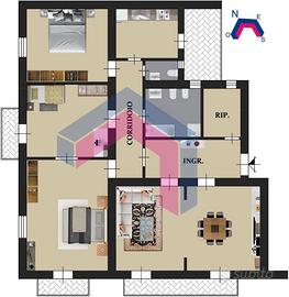 Composto da: Ampio ingresso, salone doppio, soggiorno, cucina, 2 camere da letto, doppi servizi finestrati, ripostiglio con finestra, 4 balconi (2 via Sammartino, uno su via Agrigento ed uno interno).