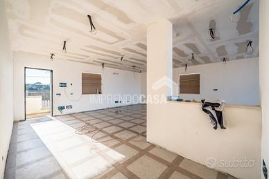 L'abitazione si presenta pari al nuovo, con elevate caratteristiche tecniche, funzionali e di comfort. Internamente è composta da ingresso su ampia area living con cucina, tre camere da letto, due servizi, due ripostigli, un Terrazzo di 65 mq e due balconi.