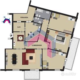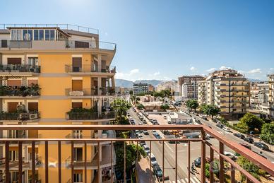 La casa è composta da: Ingresso su ampia sala, salone doppio, cucina abitabile con lavanderia e veranda, 3 camere da letto, doppi servizi, 2 balconi di 18 mq totali su via Umberto Giordano e via Pietro Paolo Vasta.