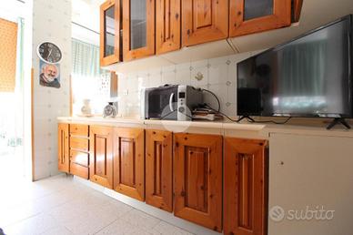 La cucina è abitabile e dotata di veranda chiusa, perfetta come zona lavanderia.