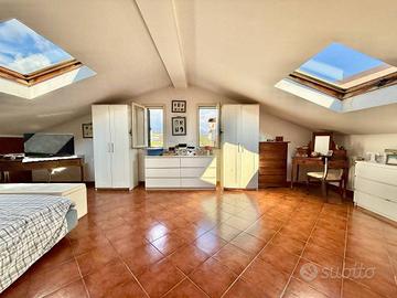 Rif:(128036958) - A San Nicolò, in via Giuseppe Leonardi, all'interno di un residence ben curato con aree a verde condominiali, proponiamo in vendita un appartamento spazioso, ideale per famiglie che cercano ambienti comodi e ben distribuiti. L'immobile si trova al 3° piano, servito da ascensore, e si sviluppa su una superficie interna di circa 145 mq, con una mansarda soprastante collegata sia da scala interna che da ingresso indipendente dal vano scala. L'ingresso conduce a un grande ambiente giorno composto da una zona di rappresentanza con accesso a un balcone terrazzato di circa 20 mq e da una zona soggiorno-pranzo con annessa cucina, entrambe con uscita su un secondo balcone, creando nell'insieme uno spazio ampio e funzionale; un disimpegno conduce poi al bagno e a una camera da letto. Tramite una scala si accede al piano superiore, dove si trovano una grande camera matrimoniale con finestre sia a tetto che laterali, un bagno completo e una seconda camera. La tripla esposizione garantisce luce naturale durante tutta la giornata e piacevoli affacci panoramici, con vista mare da un lato e vista Etna dall'altro. L'appartamento si presenta in discrete condizioni, con infissi in alluminio e vetrocamera, riscaldamento autonomo e climatizzatori in tutti gli ambienti, caratteristiche che assicurano comfort e funzionalità. Completano la proprietà un garage di 23 mq e un posto auto esterno. Il residence è situato in una zona residenziale tranquilla e ben servita, con scuole, supermercati, negozi e aree verdi attrezzate nelle immediate vicinanze, rendendolo una soluzione pratica e piacevole per la vita quotidiana. (A.P.E. in fase di rilascio)
