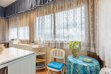 L'immobile si apre su un comodo ingresso con disimpegno, dal quale si accede a un doppio salone con affaccio su un ampio balcone lato prospetto, ideale per godere della vista aperta e della massima luminosità. La zona notte è composta da tre camere, mentre la parte servizi offre una cucina abitabile, ripostiglio e due bagni.