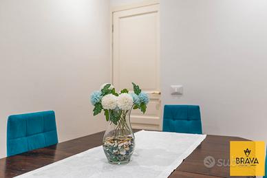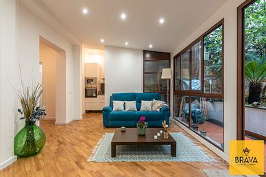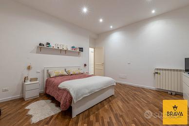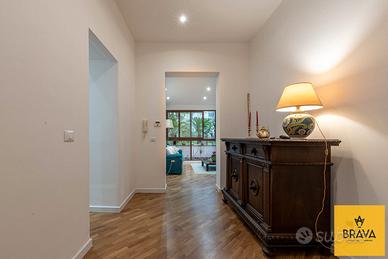 La proprietà, posta al piano terra e recentemente oggetto di una raffinata ristrutturazione integrale, si estende per 209 mq e accoglie i suoi ospiti con un'atmosfera calda e ricercata, esaltata dal parquet che accompagna ogni ambiente e dai dettagli curati con gusto. L'ingresso si apre su un salone, comodo e armonioso, perfetto per momenti di convivialità o per godere del relax quotidiano. A seguire, un accogliente soggiorno introduce la zona giorno, ben collegata a un pratico cucinotto, funzionale e pensato per ottimizzare gli spazi senza rinunciare all'estetica.